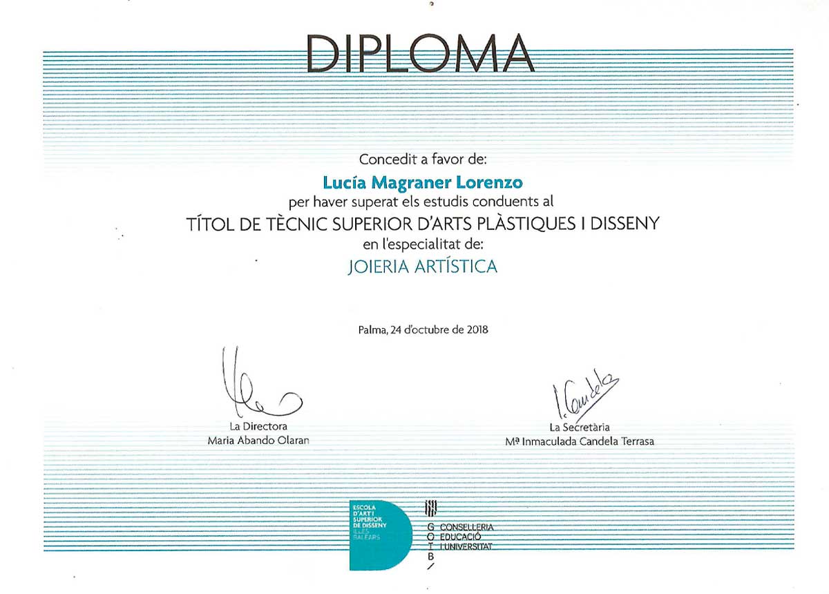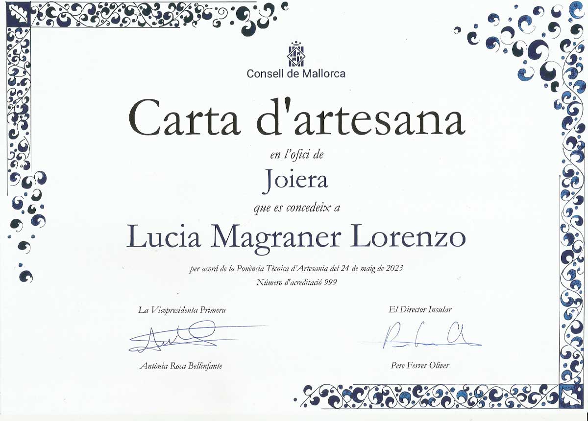 Soy Lucía Magraner Lorenzo, artesana joyera. Diseño joyas sostenibles que combinan madera de olivo procedente de podas y plata reciclada. Mi camino hacia la joyería no fue planificado; nació de experiencias personales y profesionales que, casi sin buscarlo, me llevaron a una nueva pasión.